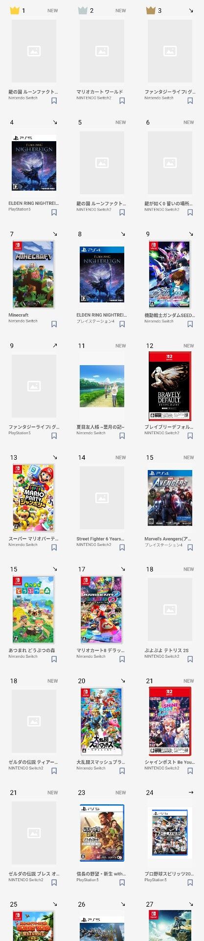 そんなとこですらSwitch2ソフトがランクインしてるということは