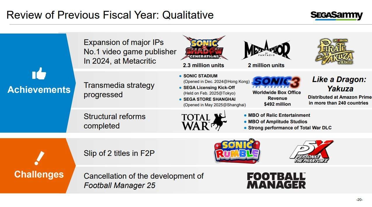 SEGA was the No.1 publisher of 2024 on Metacritic