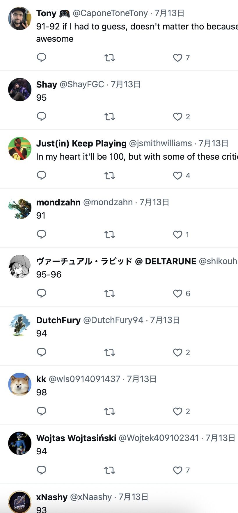 フラゲ勢も納得の平均95だもんな😉