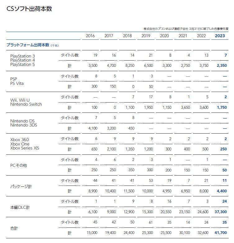 6月決算でカプコンから任天堂プラットフォームでの販売好調を指摘された