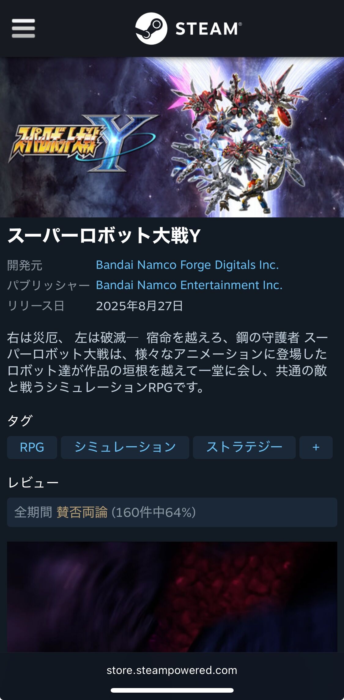 Steamで色んな新作が並んでる中でスパロボとか加齢臭キツいわ