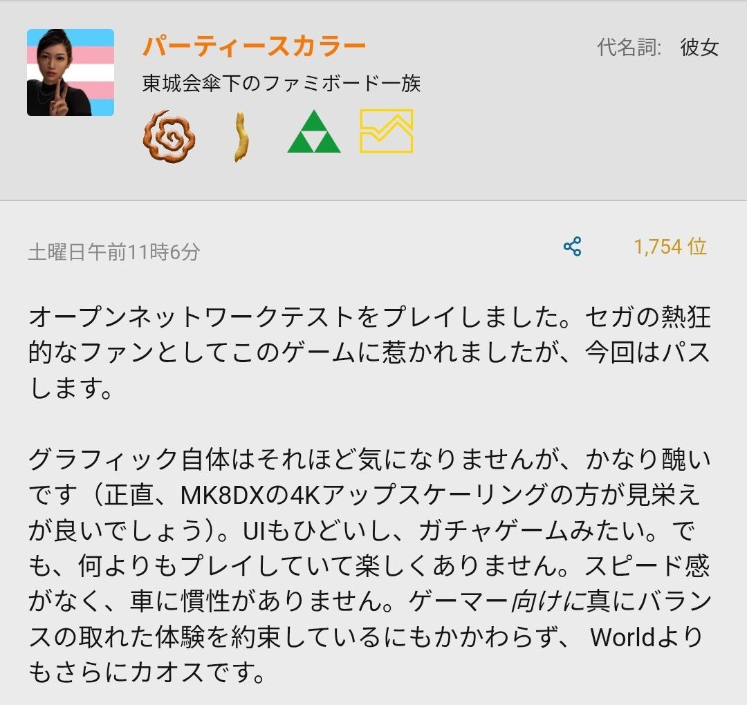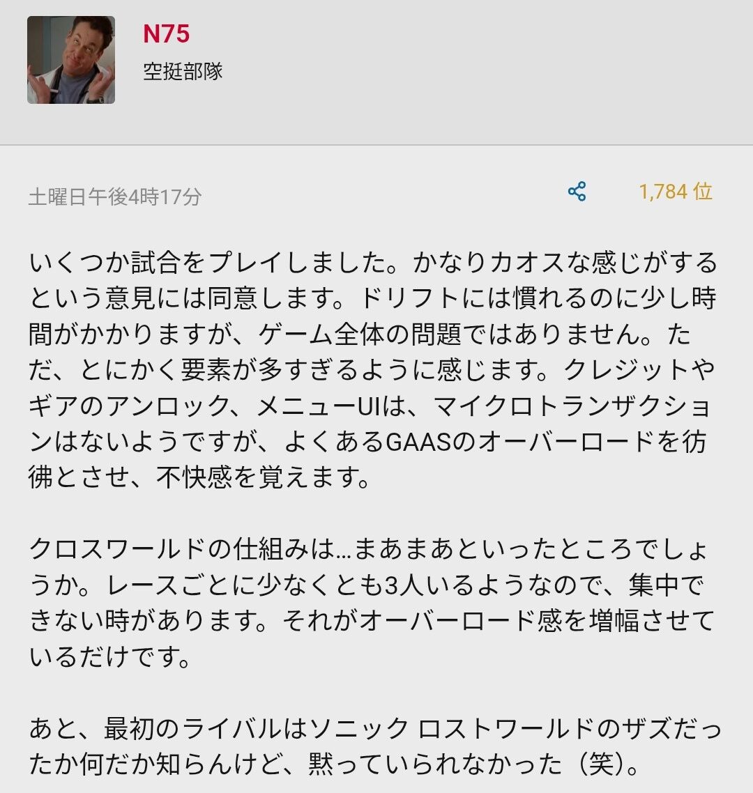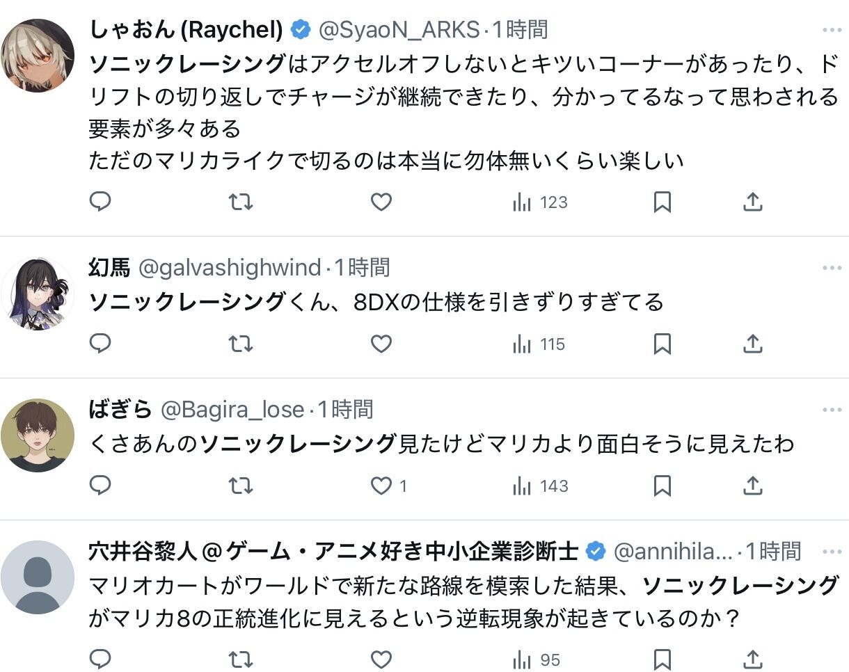 ソニックカートの海外での不評、非常に残念です。シリーズが進化する中で、ファンが期待していた要素が反映されていないのかもしれません。今後のアップデートや改善に期待したいですね。