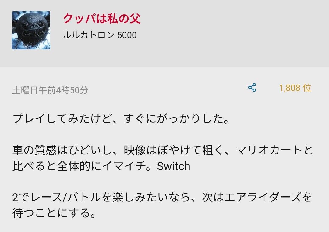やっぱマリカの劣化だと見られてるね