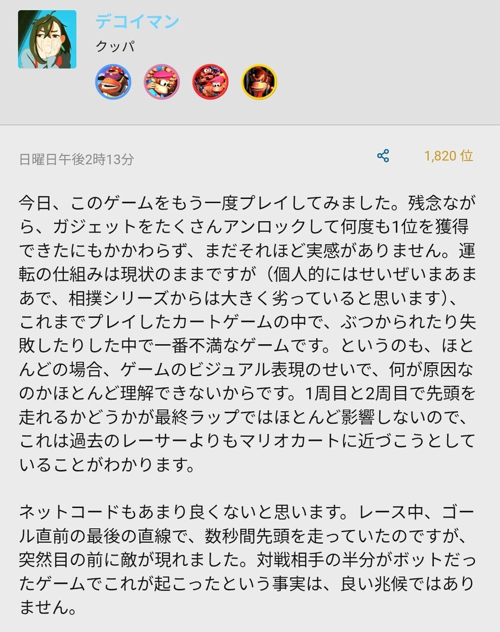 ミスしたとき壁とか走らさせるより自分の実力不足で抜かれた納得感あるし