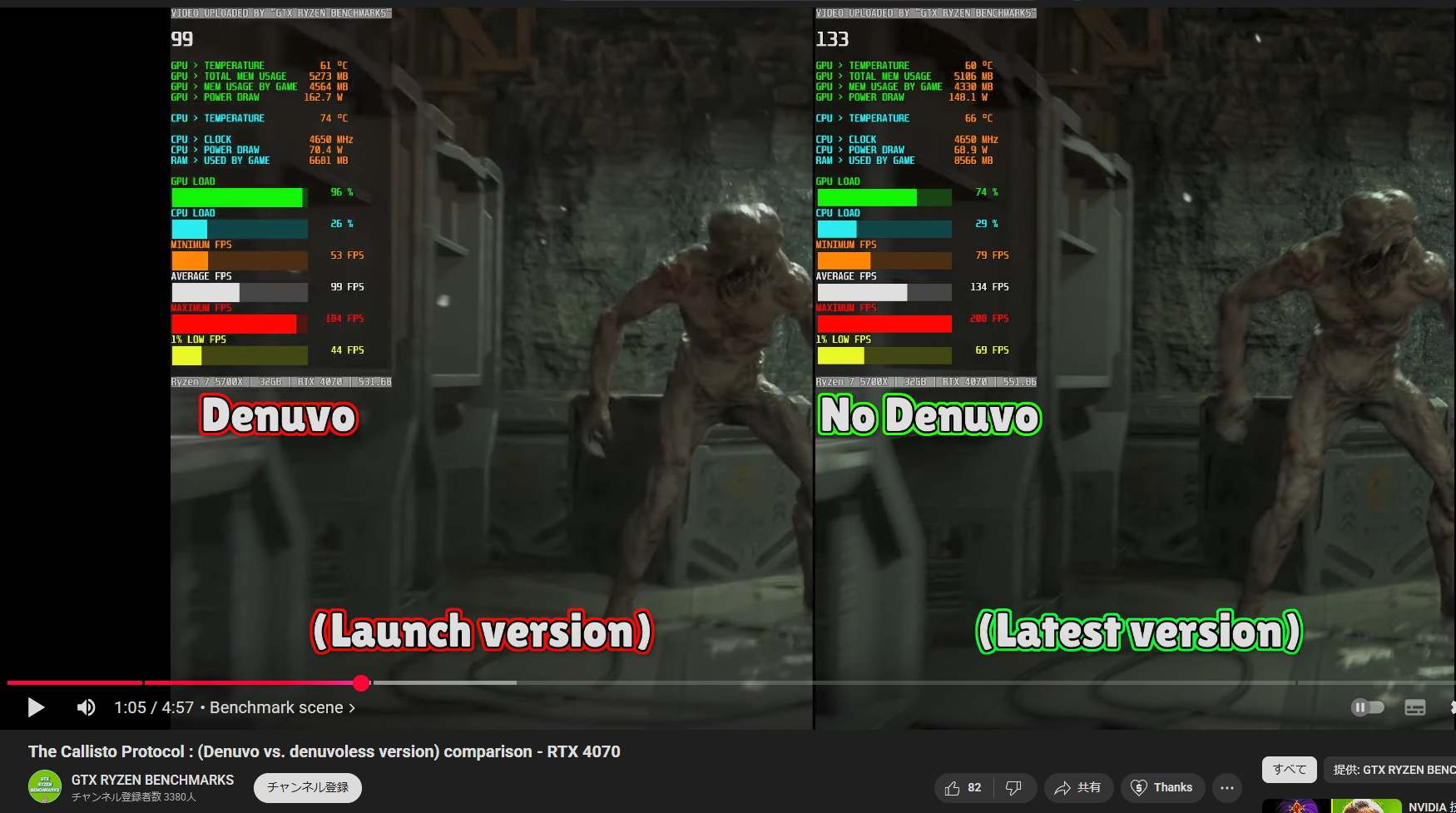 ↓DENUVOの有無による負荷の違い比較