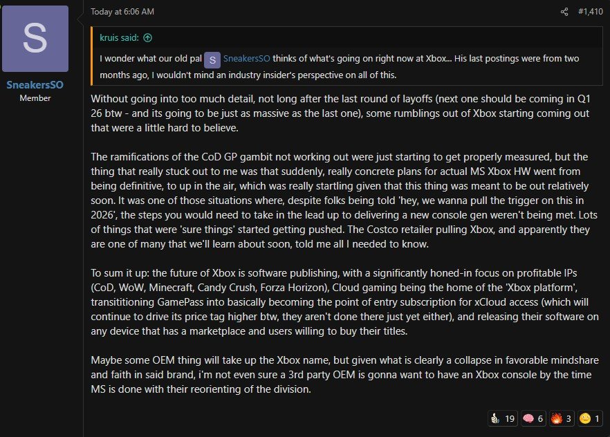 「確実」と思われていた多くの事柄が、次々と先送りにされ始めました。CostcoがXboxの取り扱いをやめたという件――そして、近いうちにそれ以外にも同様の動きがあると聞いています――これだけで、もう十分なメッセージだと感じました。