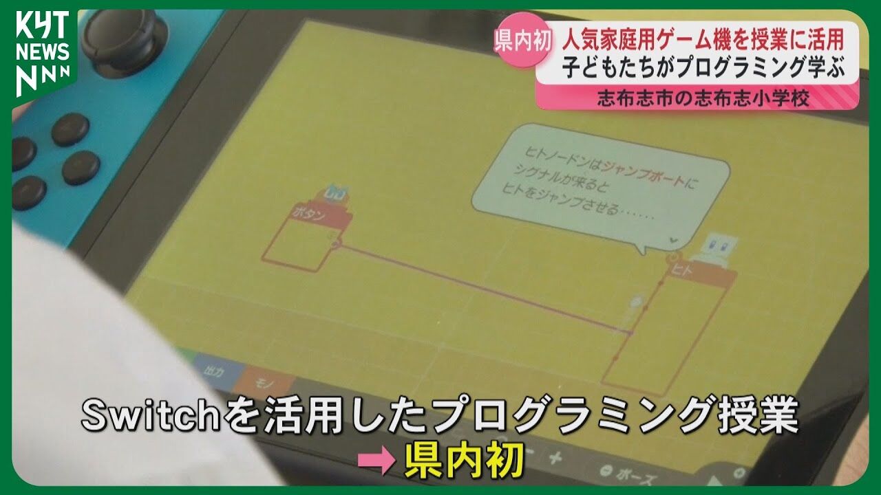 2020年度から全国の小学校でゲームやアプリのプログラムを作るプログラミングの授業が必修化されています。そうした中、志布志市の小学校であの人気家庭用ゲーム機を活用したプログラミングを学ぶ授業が県内で初めて行われました。