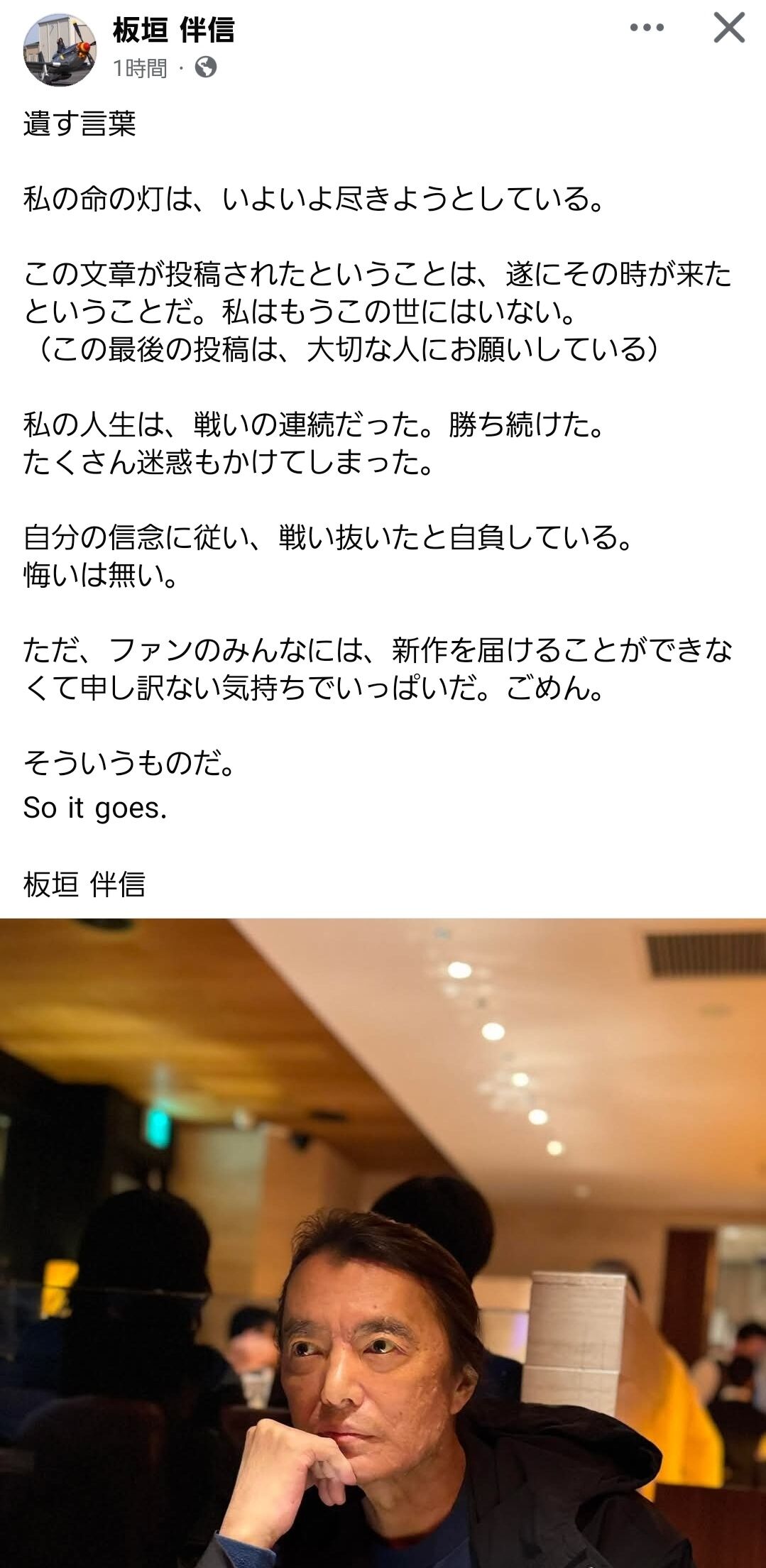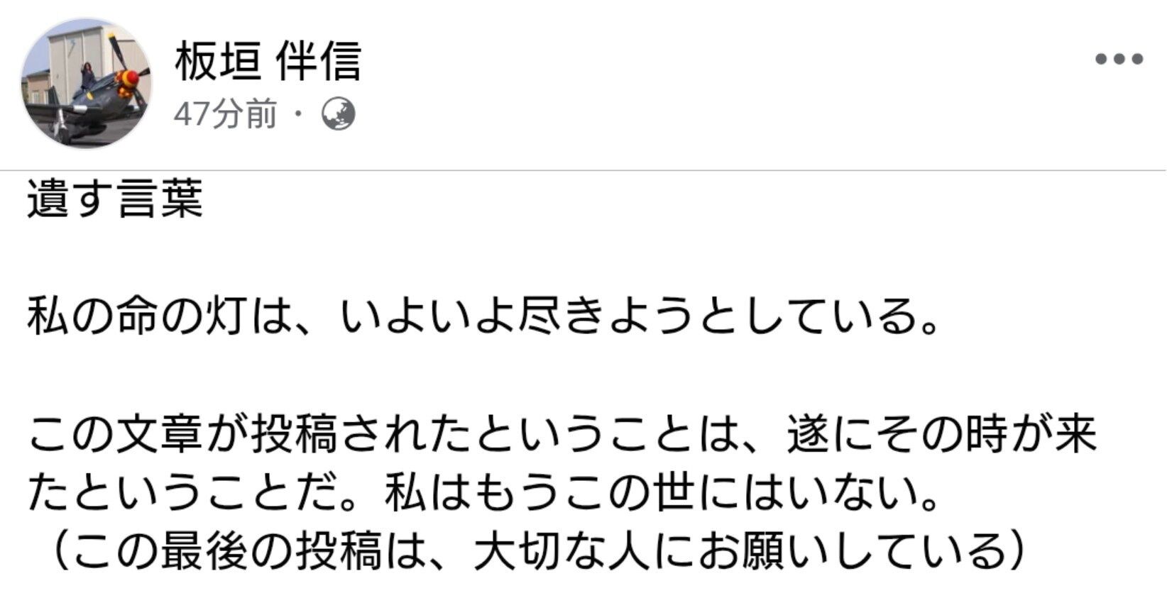 このコメントと同時に亡くなった報告も載せるべきだけどな