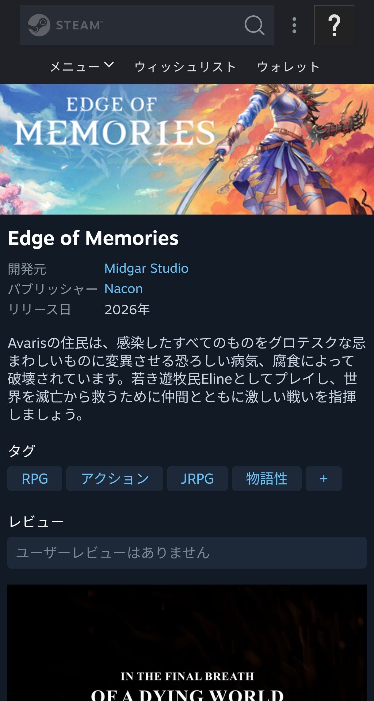 | 日本アニメインスパイアの新作RPG『Edge of Memories』最新トレイラー公開―発売は2026年に延期へ【gamescom FGS 2025】 …2025」にて、Midgar Studio開発の新作RPG『Edge of Memories』の最新トレイラーが公開されました。 これまで2025年第… (出典:Game Spark) |