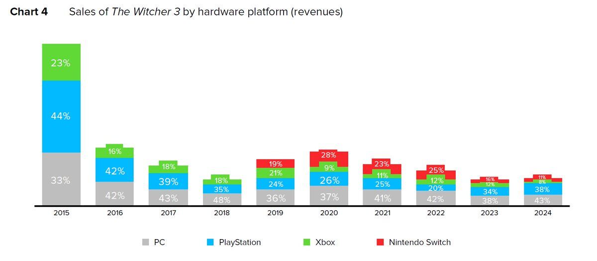 (PS5 43%, PC 34%, Switch 2 11%, Xbox Series 11%)