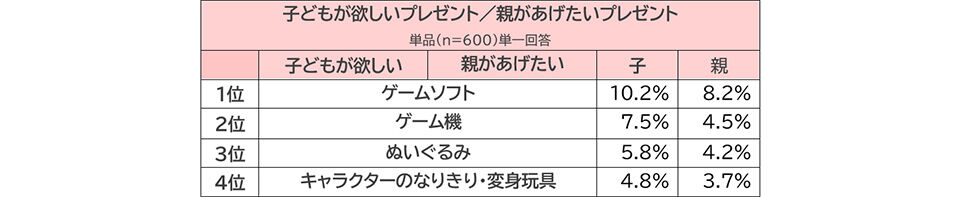 子供がクリスマスに欲しいプレゼントの1位がゲームソフト2位がゲーム機との事だ