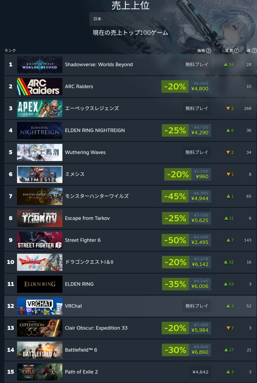 世界では知らんが日本ではPCからSwitch2やPS5に流れてきてるようだぞ